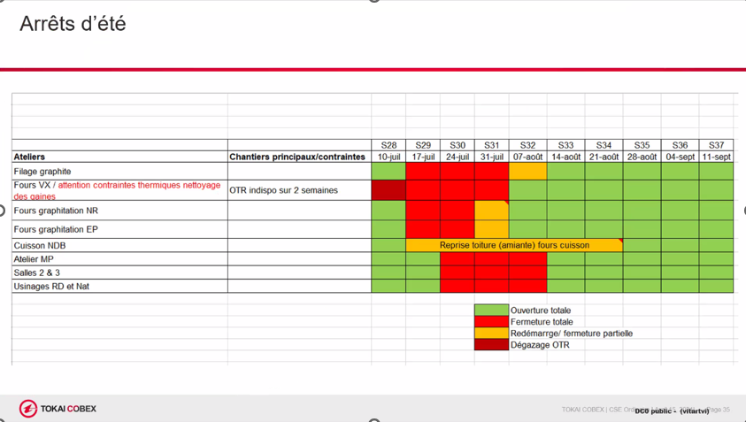 - S3/S2 : beaucoup de problème d’installation, retard client sur les pâtes, côté carbone perte de capacité.(pas de risque immédiat pour les commandes clients)